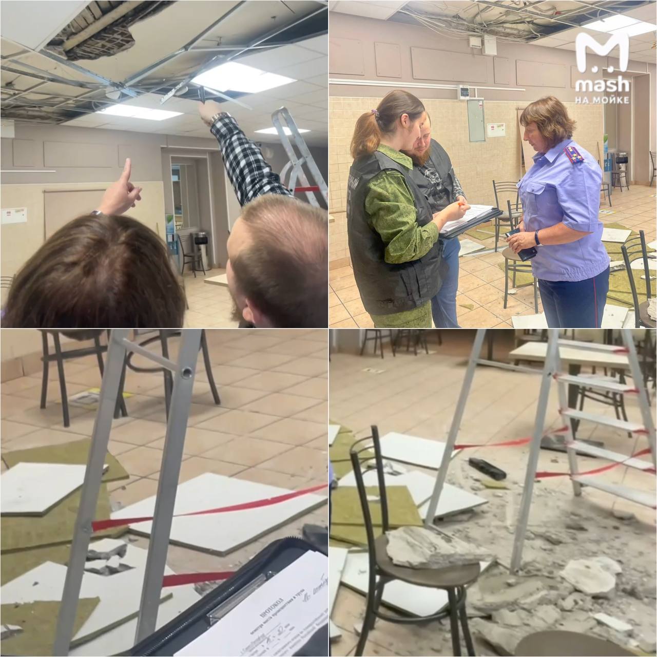 По нашей информации, потолок в столовой Второй петербургской гимназии на Казанской последний раз реставрировался 20 лет назад. За это время деревянные элементы, к которым на гвоздях крепилась конструкция подвесного потолка, попросту прогнили — и потолок обрушился вместе с внушительными кусками штукатурки.