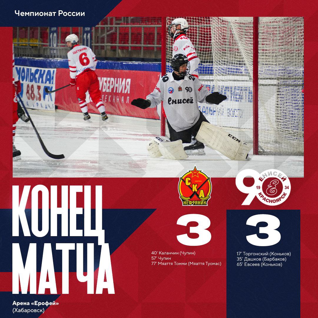 Хоккеисты «Енисея» на выезде сыграли вничью со «СКА-Нефтяником»