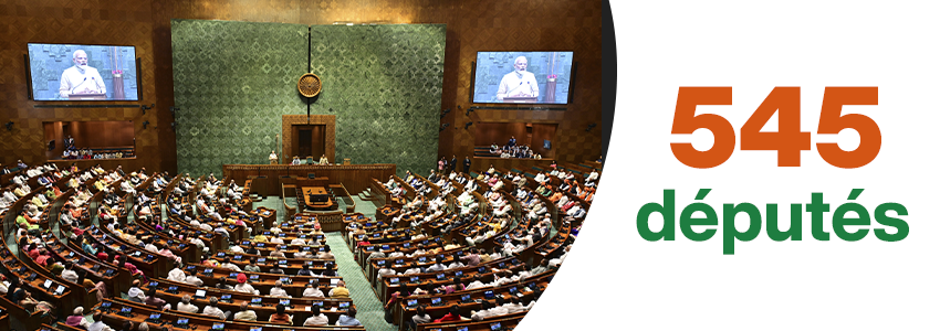 Au total, 543 sièges de la Lok Sabha, la chambre basse du parlement indien, sont mis en jeu pour un mandat de cinq ans. À cela s'ajoutent deux sièges réservés à la communauté anglo-indienne, dont les membres sont nommés par le président indien.
