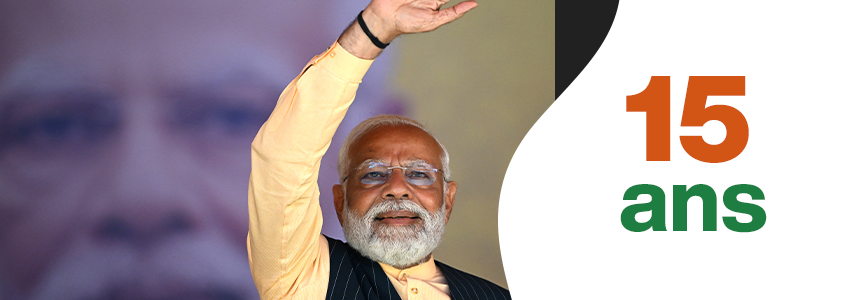 Si le Premier ministre Narendra Modi, 73 ans, remporte ce nouveau scrutin, il signera donc pour quinze ans à la tête de l'Inde. Or, après une décennie au pouvoir, il bénéficiait d'une opinion favorable de 80 %, selon une enquête Pew publiée l'an dernier.