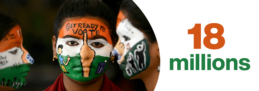 C'est le nombre de primo-votants qui pourront voter lors du scrutin. Un électorat crucial pour les différents partis en lice alors que 40 % de la population indienne a moins de 25 ans, selon les projections de l'ONU.