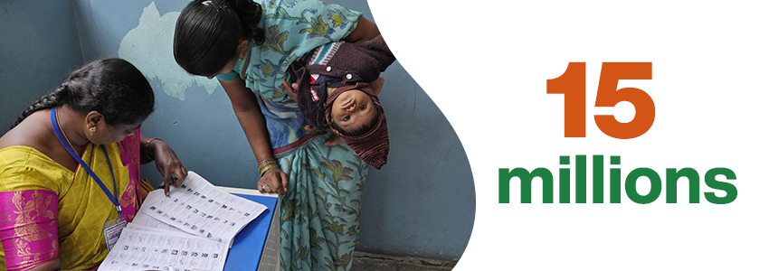 C'est le nombre d'Indiens, âgés de 18 ans et plus, qui seront appelés à voter lors de ce scrutin. À chacune des élections législatives, l'Inde bat son propre record. En 2019, 900 millions d'électeurs étaient inscrits sur les listes électorales. Parmi eux, 615 millions s'étaient effectivement déplacés pour un taux de participation de plus de 67 %, selon la commission électorale indienne.