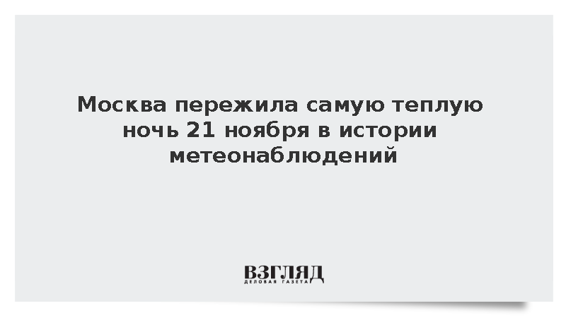 Прошедшая ночь в Москве стала самой теплой для этой даты за всю историю метеонаблюдений с температурой +6,1 градуса, что на 9 градусов выше климатической нормы ноября.
