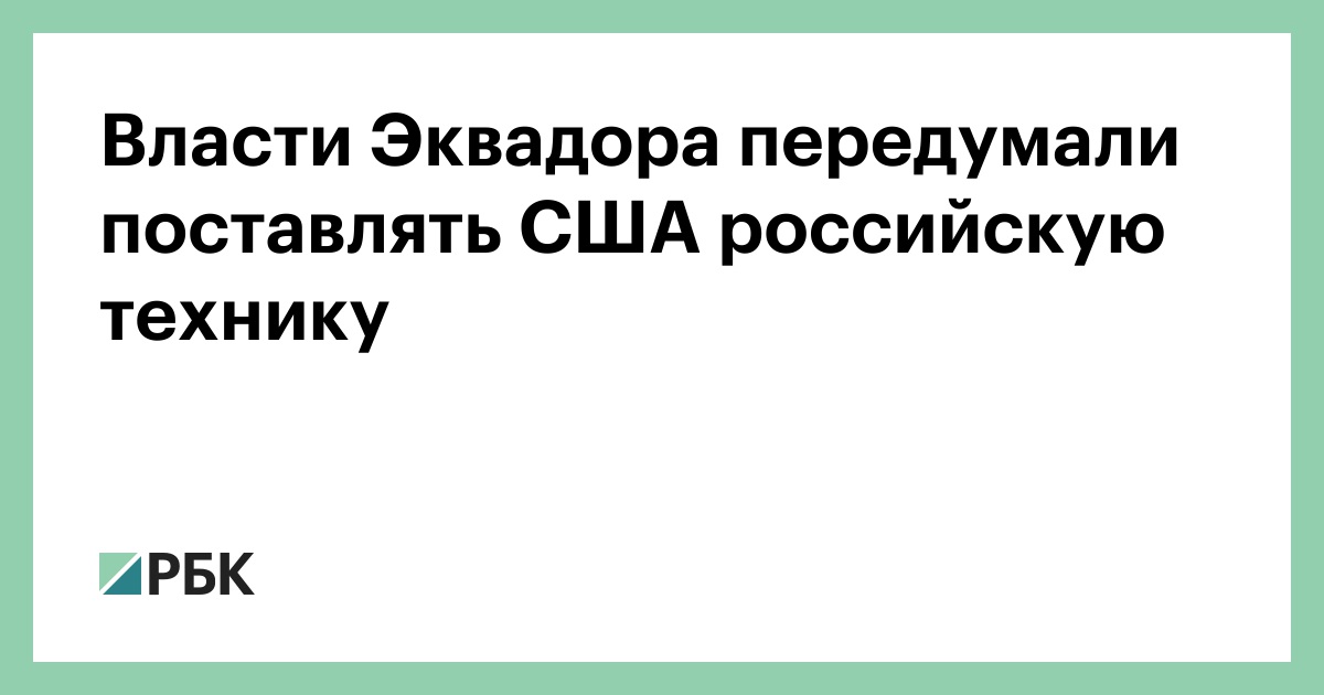 Власти Эквадора отменили свое решение о поставке российской техники США в обмен на новую, сообщил «РИА Новости» российский посол Владимир Спринчан. Вашингтон собирался передать полученное от Эквадора оборудование Украине.