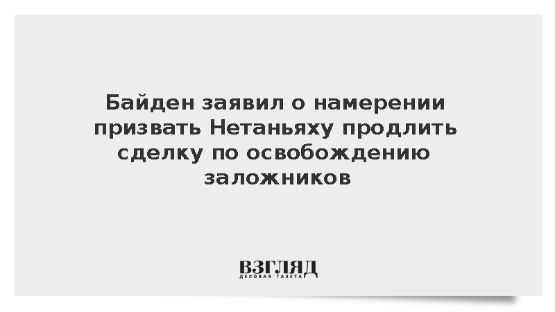 Президент США Джо Байден заявил, что в разговоре, который должен состояться с премьер-министром Израиля Биньямином Нетаньяху, призовет израильского премьера к продлению сделки по освобождению заложников и временному прекращению боевых действий.
