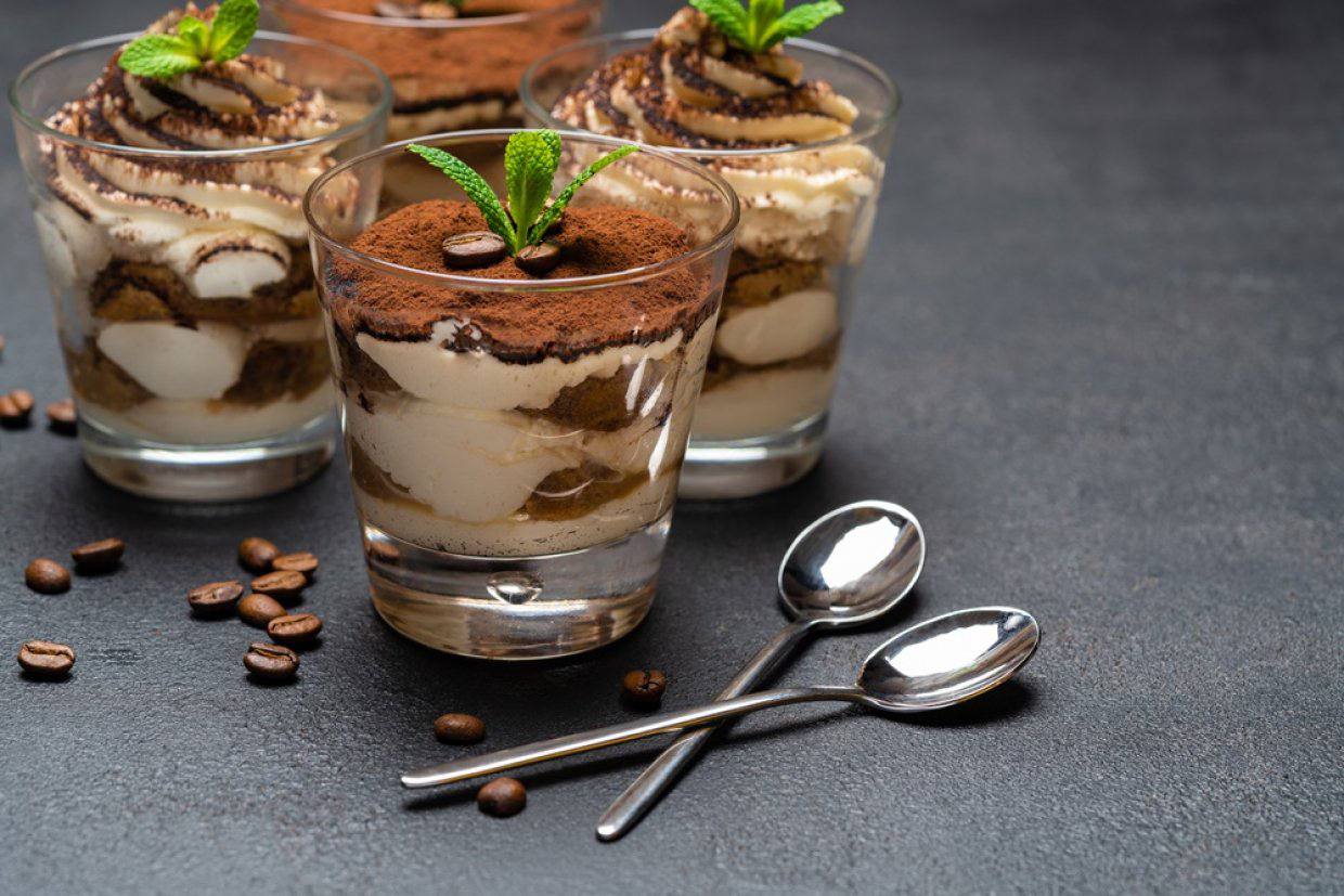 3. Собрать тирамису в стаканчиках: печенье на секунду опускаем в кофе, выкладываем на дно стаканчика, сверху крем и чередуем слои.