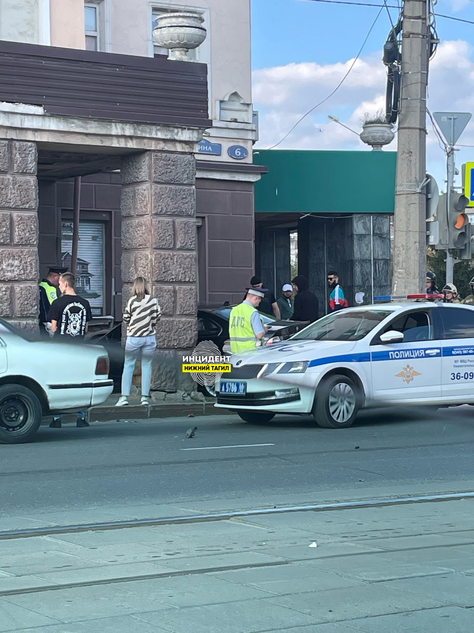 В Нижнем Тагиле водитель BMW влетел в стену гостиницы «Северный Урал». На месте работали сотрудники ГИБДД, МЧС и скорой.
