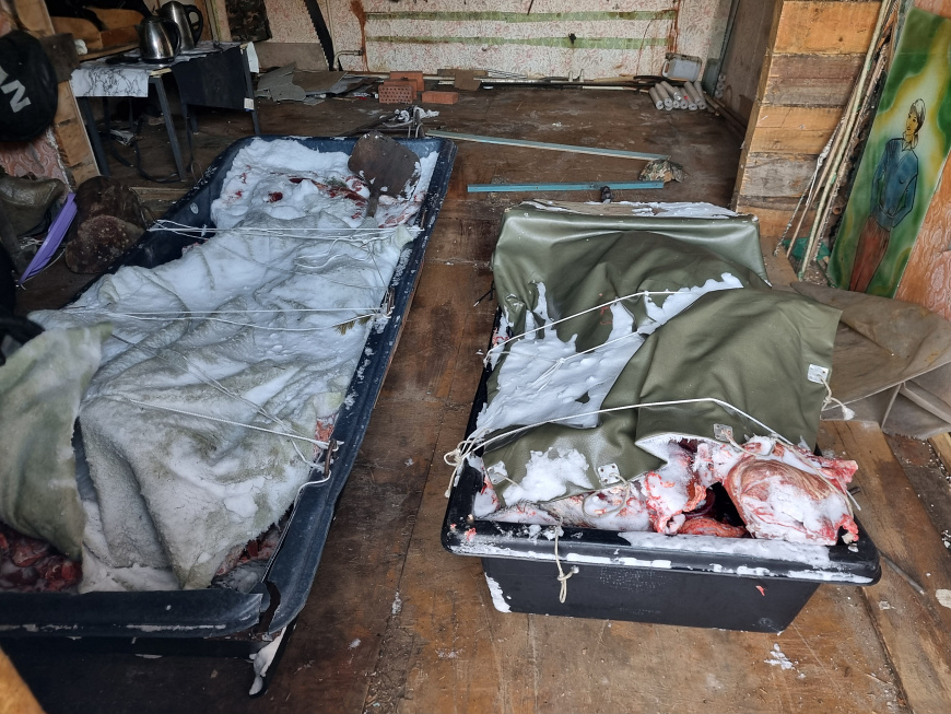 В ходе проверочных мероприятий сотрудники полиции обнаружили одно из ружей, из которого, предположительно, производился отстрел животных, а также разделанные туши.