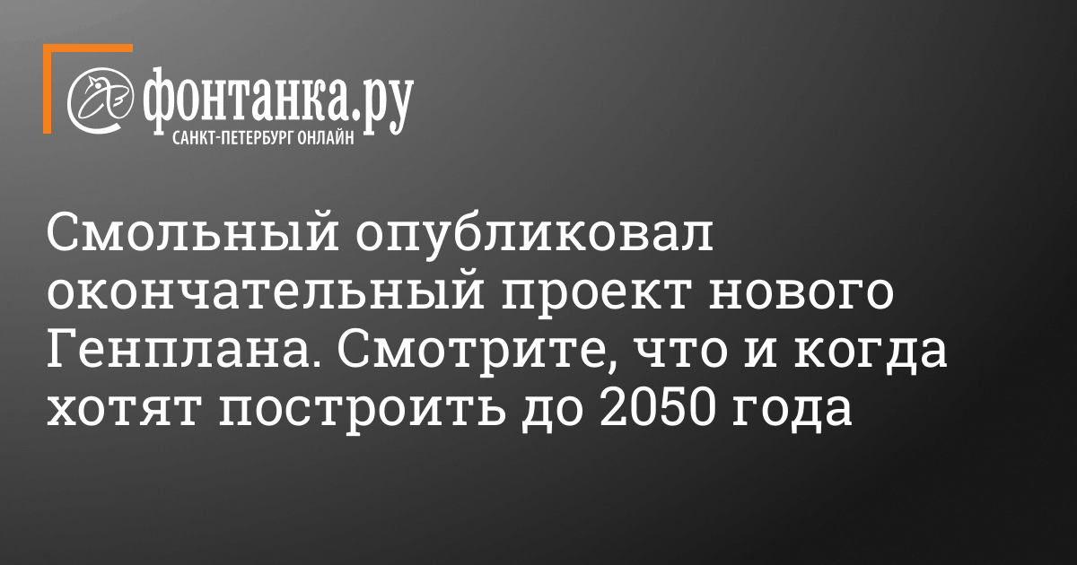 Смольный 10 октября опубликовал окончательный проект нового Генерального плана Петербурга до 2040 года с прогнозируемым периодом до 2050 года. Документ был представлен для прохождения антикоррупционной экспертизы.