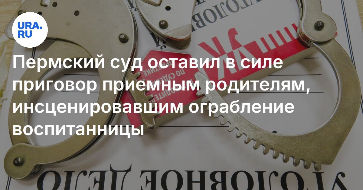 Пермский краевой суд оставил в силе приговор приемным родителям из Кунгура, осужденным за инсценировку ограбления своей воспитанницы с целью хищения ее денег. Об этом сообщается на сайте суда.