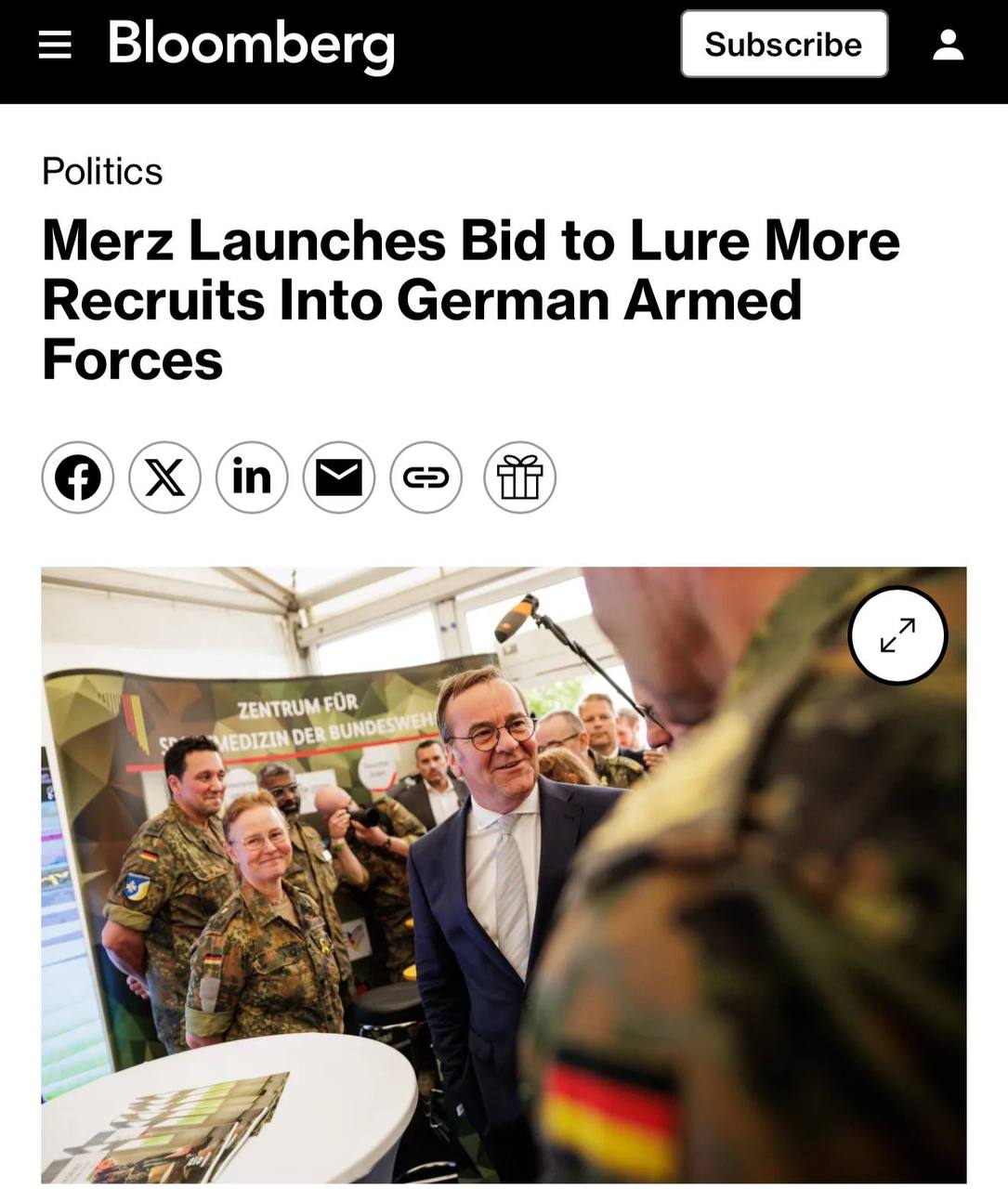 π©πͺ Bloomberg: Π² Π€Π Π ΠΏΠΎΠ΄Π³ΠΎΡΠΎΠ²ΠΈΠ»ΠΈ Π½ΠΎΠ²ΡΠΉ Π·Π°ΠΊΠΎΠ½ΠΎΠΏΡΠΎΠ΅ΠΊΡ Π΄Π»Ρ ΡΠ°ΡΡΠΈΡΠ΅Π½ΠΈΡ ΡΠΈΡΠ»Π΅Π½Π½ΠΎΡΡΠΈ Π±ΡΠ½Π΄Π΅ΡΠ²Π΅ΡΠ° Π΄ΠΎ 460 ΡΡΡ. ΡΠ΅Π»ΠΎΠ²Π΅ΠΊ, ΠΊΠΎΡΠΎΡΡΠΉ ΠΏΡΠ΅Π΄ΡΡΠΌΠ°ΡΡΠΈΠ²Π°Π΅Ρ Π°Π½ΠΊΠ΅ΡΠΈΡΠΎΠ²Π°Π½ΠΈΠ΅ ΠΌΠΎΠ»ΠΎΠ΄ΡΡ ΠΌΡΠΆΡΠΈΠ½ ΠΈ Π²ΠΎΠ·ΠΌΠΎΠΆΠ½ΠΎΡΡΡ Π²ΠΎΠ·Π²ΡΠ°ΡΠ΅Π½ΠΈΡ ΠΏΡΠΈΠ·ΡΠ²Π°, ΠΏΠΈΡΠ΅Ρ ΠΈΠ·Π΄Π°Π½ΠΈΠ΅.