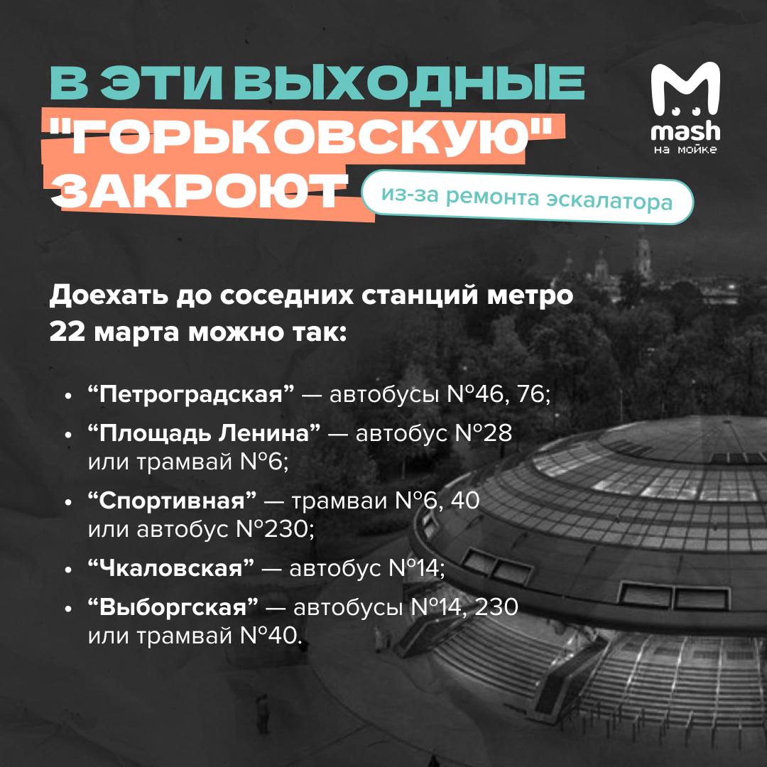 Эта суббота оставит нас без "Горьковской" — 22-го марта станцию закроют на вход и выход, предупреждает питерский Комтранс.