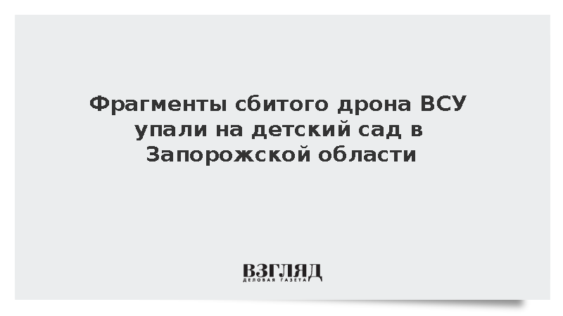Фрагменты сбитого украинского беспилотника упали на территорию детского сада и пожарной части в Бердянске Запорожской области, сообщил губернатор региона Евгений Балицкий.