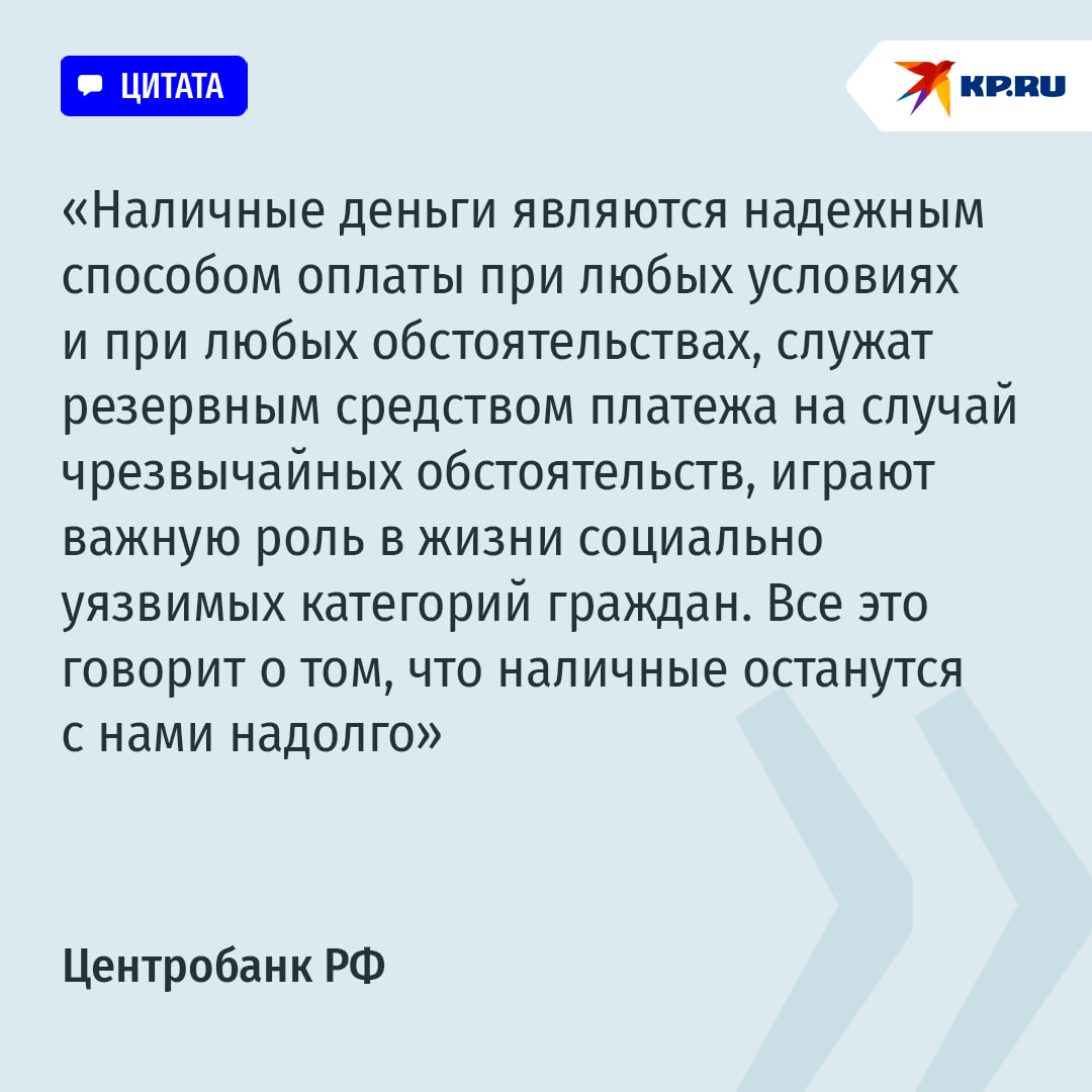 В Гознаке заявили, что к 2030 г. РФ созреет для того, чтобы полностью отказаться от наличных. Так ли это? Сейчас доля наличных платежей в стране, действительно, падает – уже больше 85% расчетов приходится на безнал. Однако наличные исчезнут не скоро. Сегодня в обращении больше 18 трлн наличных рублей. Это свидетельствует о том, что банкноты и монеты востребованы, пояснили KP.RU в пресс-службе Банка России. Это показывают данные соцопроса, который провел ЦБ. Лишь 6% россиян полностью отказались от использования физических денег. А 7% респондентов сказали, что, наоборот, платят только наличными.