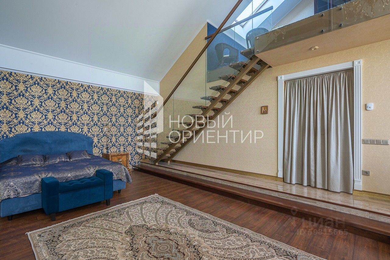 На втором этаже оборудована гигантская спальня на 150 квадратных метров, кабинет, гардеробная, санузел и зимний сад, где можно расслабиться.
