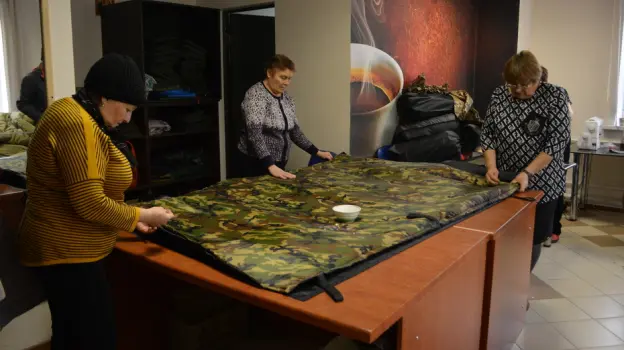 За неделю волонтеры сшили десять таких покрывал и начали шить носилки. В швейном цеху постоянно трудятся около десятка человек: кто-то кроит, кто-то шьет. Остальные добровольцы шьют на дому, так как в цеху не хватает техники и рабочего пространства. Женщины берут заготовки изделий и в назначенный срок приносят готовые вещи.