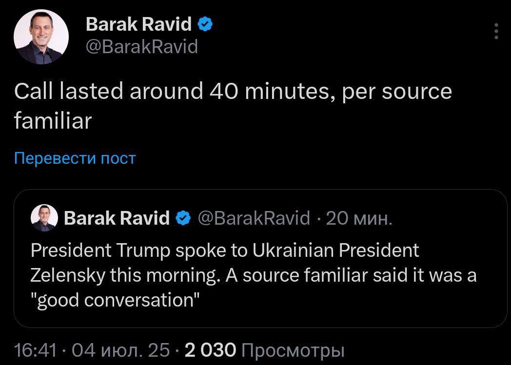 π§Π£ Π’ΡΠ°ΠΌΠΏΠ° ΠΈ ΠΠ΅Π»Π΅Π½ΡΠΊΠΎΠ³ΠΎ Π±ΡΠ» Β«Ρ ΠΎΡΠΎΡΠΈΠΉ ΡΠ°Π·Π³ΠΎΠ²ΠΎΡΒ», ΠΊΠΎΡΠΎΡΡΠΉ Π΄Π»ΠΈΠ»ΡΡ ΠΎΠΊΠΎΠ»ΠΎ 40 ΠΌΠΈΠ½ΡΡ β ΠΆΡΡΠ½Π°Π»ΠΈΡΡ Axios Π Π°Π²ΠΈΠ΄ ΡΠΎ ΡΡΡΠ»ΠΊΠΎΠΉ Π½Π° ΠΈΡΡΠΎΡΠ½ΠΈΠΊ