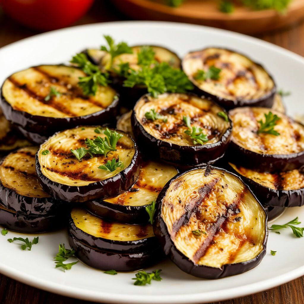5․ Подрумяненные баклажаны выложите на тарелку и полейте маслом с чесноком и зеленью.