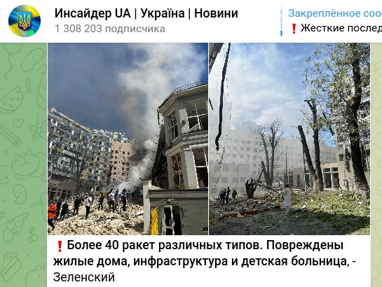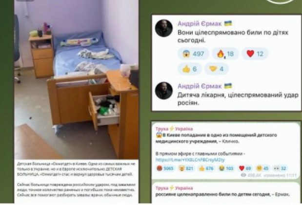 Хайп на крови: Украинские паблики разгоняют фейк об ударе русскими ракетами по детской больнице в Киеве