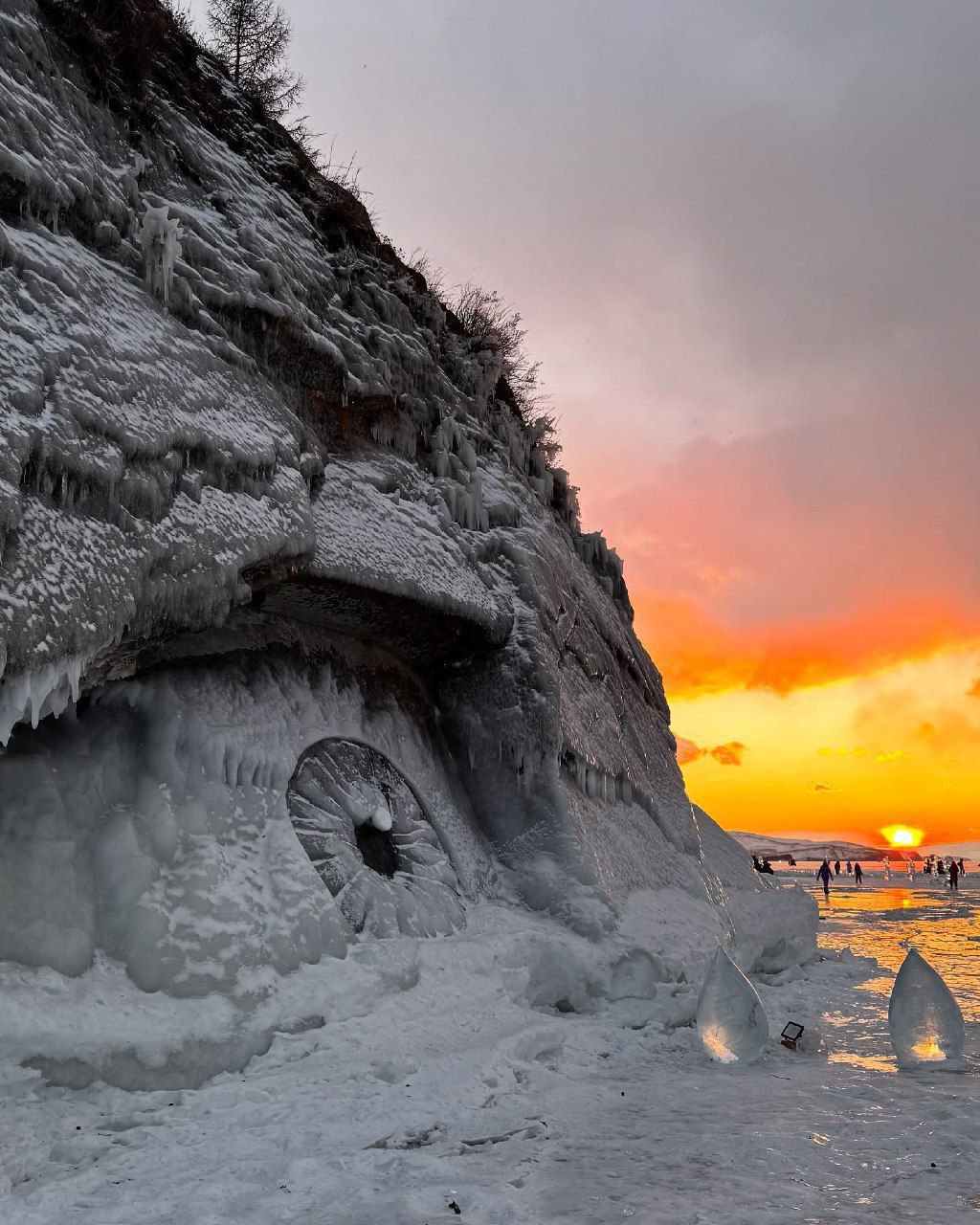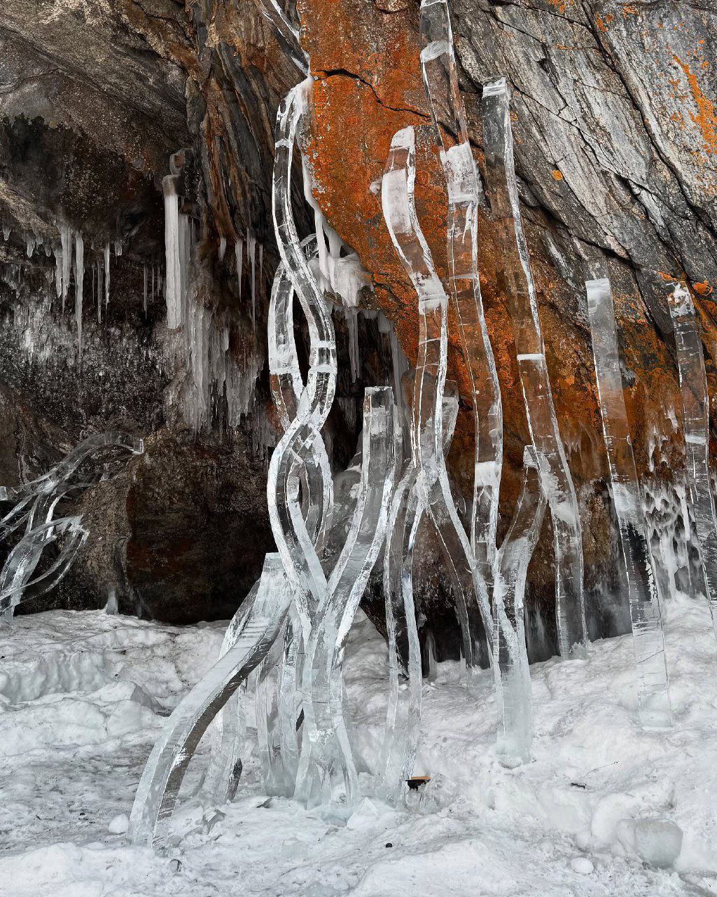 📸 Мастера не используют заготовленный лед, а работают с естественными наплесками Байкала, ледяными гротами, сталактитами и сталагмитами. Фестиваль открыт в течение месяца, вход свободный.