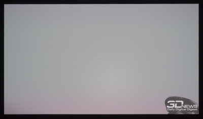Равномерность белого поля хорошая, но лёгкое затемнение от центра нижней части экрана к краям присутствует. Впрочем, цветных разводов нет. Равномерность черного поля очень хорошая, пусть даже в центральной нижней части оно также немного светлее, чем на периферии.