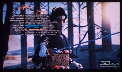 При выводе оригинального 4К-контента изображение отличается достаточно высокой чёткостью и детализацией. При этом нельзя сказать, что разница при переходе в нативный режим работы DLP-чипа (без работы XRP-актуатора для сдвига пикселей) очень большая. Всё-таки используемая матрица имеет разрешение менее 4К, поэтому, даже несмотря на продвинутую систему сдвига микрозеркал, рассчитывать на идеальное воспроизведение контента высокого разрешения не стоит.