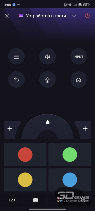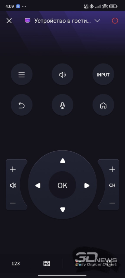 Управление лазерным проектором Hisense в базовом варианте производится с помощью пульта ДУ из комплекта поставки. Пульт для новинки в компании изменили – убрали цифровой блок клавиш и заменили клавишами управления плеером. В верхней и центральной частях пульта представлено большое количество функциональных кнопок для быстрого вызова приложений (часть которых, увы, стала неактуальной для нашей страны), навигационный блок и четыре смежные кнопки по его краям: вызов основного меню, назад, выход и переход к «домашнему экрану» операционной системы.