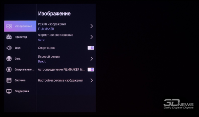 В данном случае мы уже выявили самые актуальные пресеты. Поклонники более мягкой, «ламповой» картинки могут перейти в протестированный нами и настоятельно предлагаемый производителем режим Filmmaker. Это прекрасный выбор для тех, кто не хочет заниматься дополнительной настройкой и рассчитывает на изначально высокую точность цветопередачи.