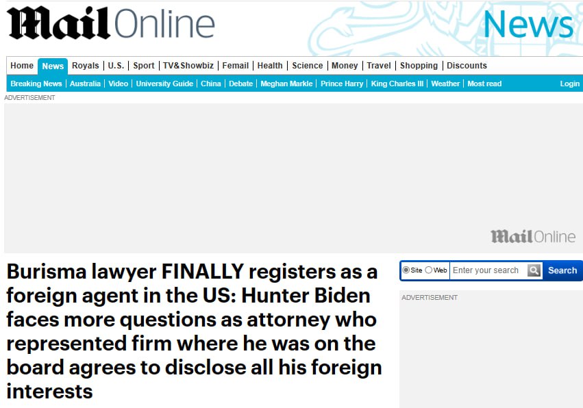 The Daily Mail: Юрист, выполнявший 8 лет назад работу для украинской энергетической компании Burisma, когда Хантер Байден входил в совет директоров, зарегистрировался в качестве иноагента на тот период. Раскрытие им информации вызывает вопрос: может ли Хантер столкнуться с обвинениями, которые осложнят переизбрание его отца?
