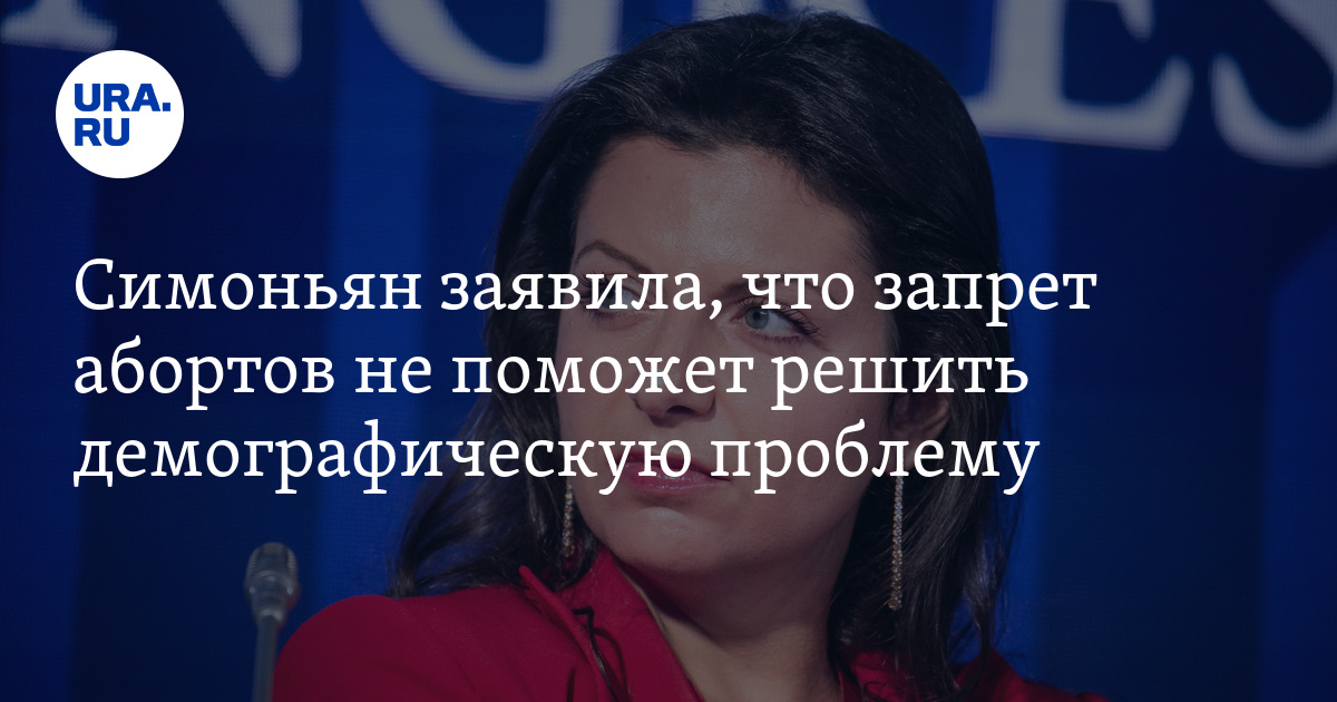 «Запрет абортов приведет только к одному: к подпольным абортам. То есть к материнским смертям, заражениям, бесплодию», — подчеркнула Маргарита Симоньян в видео для «Кеосаян Daily». Она уточнила, что сама не против абортов, но только для себя лично. Полный же запрет на прерывание беременности на государственном уровне может стать опасным для россиянок. По словам журналистки, которая сама является многодетной матерью, отказ от абортов на законодательном уровне не сможет решить проблему с демографическим кризисом.