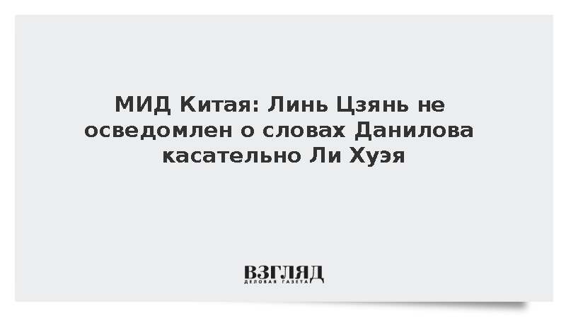 Спикер МИД Китая Линь Цзянь заявил, что не знает о ситуации с заявлением секретаря СНБО Украины Алексея Данилова касательно китайского спецпредставителя по Евразии Ли Хуэя.