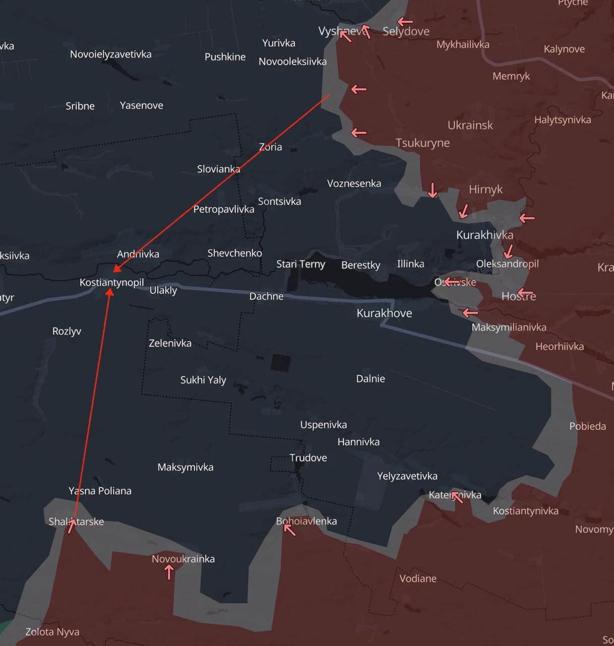 Военная логика. На Украине с ужасом смотрят на эту карту. Там военные активисты считают, что армия России сейчас проводит операцию по окружению группировки ВСУ в Курахово. И армия России пытается с Юга и с востока выйти на Константинополь. После этого Южный фронт ВСУ рухнет. И тогда начнётся быстрое наступление на Запорожье и Днепр.