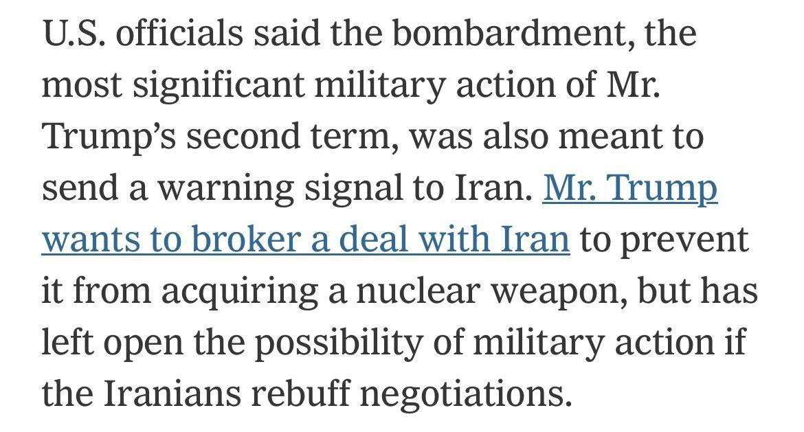 Американские официальные лица утверждают, что удары по целям хуситов в Йемене сегодня вечером также были призваны послать Ирану предупредительный сигнал, сообщает NYT.