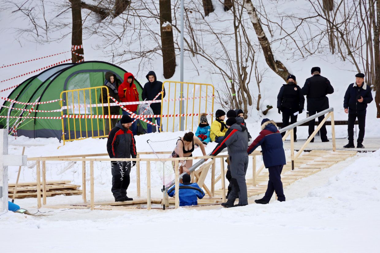 В этом году оттепель не позволяет организовать полноценные купели, но будут обустроены подходы в водоёмы со специальными настилами. Это позволит не выходить на тонкий лёд и избежать беды. Всего в столице организованы 42 майны (деревянный пирс с поручнями) и 10 купелей. Все они обязательно оснащены деревянными настилами, поручнями, противоскользящими покрытиями, раздевалками, пунктами обогрева и передвижными туалетами.