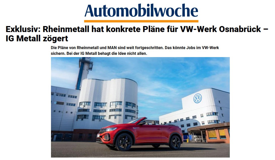 Против инициативы выступает профсоюз IG Metall, который отвергает саму идею военного производства на автомобильных заводах.