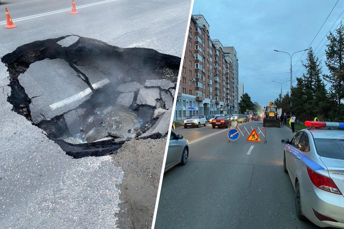 В Красноярке на Дубровинского провалился асфальт. Крупная яма образовалась в районе дома №104, по пути в сторону улицы Перенсона. Оттуда вытекает горячая вода.