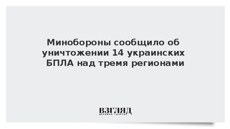 С 8.00 до 11.00 по московскому времени дежурные средства противовоздушной обороны уничтожили 14 украинских беспилотных летательных аппаратов самолетного типа, сообщается в Telegram-канале Минобороны России.