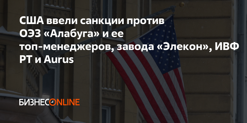 США в новом пакете санкций ввели ограничения в отношении ОЭЗ «Алабуга» и ее гендиректора, депутата Госсовета Татарстана Тимура Шагивалеева, а также завода «Элекон», производителя Aurus в «Алабуге», Инвестиционно-венчурного фонда Татарстана, центра цифровых технологий, Казанского завода точного машиностроения, опытно-конструкторского бюро им. Симонова, ООО «Технократия», а также целого ряда других компаний из Татарстана. Об этом говорится в документе, опубликованном на сайте минфина Соединенных Штатов.