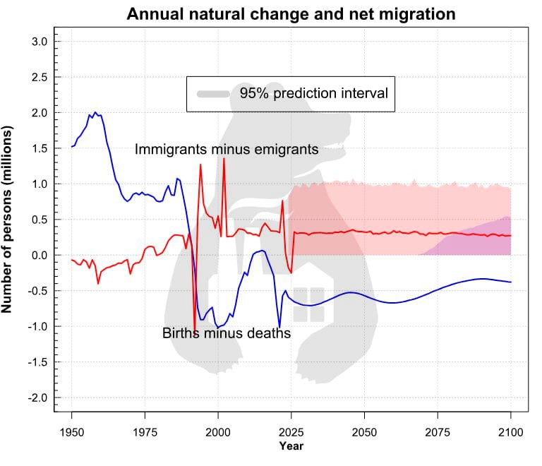 ΠΡΠ΅ ΠΌΡΠ°ΡΠ½Π΅Π΅ ΠΊΠ°ΡΡΠΈΠ½Π° ΡΡΠ°Π½ΠΎΠ²ΠΈΡΡΡ Π² ΠΊΠΎΠ½ΡΠ΅ΠΊΡΡΠ΅ ΠΏΡΠΎΠ³Π½ΠΎΠ·ΠΎΠ² ΠΎΠ± ΡΠ²Π΅Π»ΠΈΡΠ΅Π½ΠΈΠΈ ΡΠΈΡΠ»Π° ΠΏΡΠΈΠ΅Π·ΠΆΠΈΡ ΠΏΡΠΈ Π΅ΡΡΠ΅ΡΡΠ²Π΅Π½Π½ΠΎΠΉ ΡΠ±ΡΠ»ΠΈ ΠΊΠΎΡΠ΅Π½Π½ΠΎΠ³ΠΎ Π½Π°ΡΠ΅Π»Π΅Π½ΠΈΡ. ΠΠΈΠ³ΡΠ°ΡΠΈΠΎΠ½Π½ΡΠΉ ΠΏΡΠΈΡΠΎΡΡ ΠΊ 2100 Π³ΠΎΠ΄Ρ ΡΠΎΡΡΠ°Π²ΠΈΡ 20 ΠΌΠ»Π½ ΡΠ΅Π»ΠΎΠ²Π΅ΠΊ β ΠΎΡΠ΅Π²ΠΈΠ΄Π½ΠΎ, ΡΡΠΎ Π² ΠΎΡΠ½ΠΎΠ²Π½ΠΎΠΌ ΡΡΠΎ Π»ΡΠ΄ΠΈ ΡΡΡΠ΄ΠΎΡΠΏΠΎΡΠΎΠ±Π½ΠΎΠ³ΠΎ Π²ΠΎΠ·ΡΠ°ΡΡΠ°, Π° Π½Π΅ Π΄Π΅ΡΠΈ ΠΈΠ»ΠΈ ΠΏΠ΅Π½ΡΠΈΠΎΠ½Π΅ΡΡ. Π Π΅ΡΡ ΠΈΠ΄Π΅Ρ ΠΊΠ°ΠΊ ΠΎ ΠΊΡΠ»ΡΡΡΡΠ½ΠΎΠΌ Π·Π°ΠΌΠ΅ΡΠ΅Π½ΠΈΠΈ, ΡΠ°ΠΊ ΠΈ ΠΎ ΠΊΡΠ°ΠΉΠ½Π΅ΠΉ Π·Π°Π²ΠΈΡΠΈΠΌΠΎΡΡΠΈ ΠΎΡ ΠΈΠΌΠΏΠΎΡΡΠ° ΡΠ°Π±ΠΎΡΠΈΡ ΡΡΠΊ, ΠΈ Π΅ΡΠ»ΠΈ Π½Π΅ ΠΏΡΠΎΠ²Π΅ΡΡΠΈ ΡΠ΅ΡΠΎΡΠΌΡ Π² ΡΡΠΎΠΉ ΠΎΠ±Π»Π°ΡΡΠΈ, ΡΠΎ Π½Π΅ Π°Π΄Π°ΠΏΡΠΈΡΠΎΠ²Π°Π½Π½ΡΡ Π½ΠΈ ΡΠΎΡΠΈΠ°Π»ΡΠ½ΠΎ, Π½ΠΈ ΠΊΡΠ»ΡΡΡΡΠ½ΠΎ.