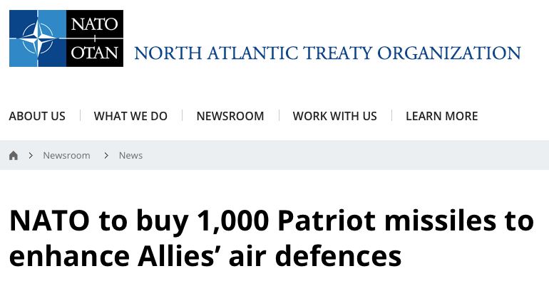 🇫🇲Предсказуемо, НАТО несколько месяцев прогревало общественность на тему «опасности России» в отношении Европы, а затем использовало недавние удары по военным объектам Незалежной, чтобы протолкнуть контракт на производство ракет для ЗРК Patriot в Германии