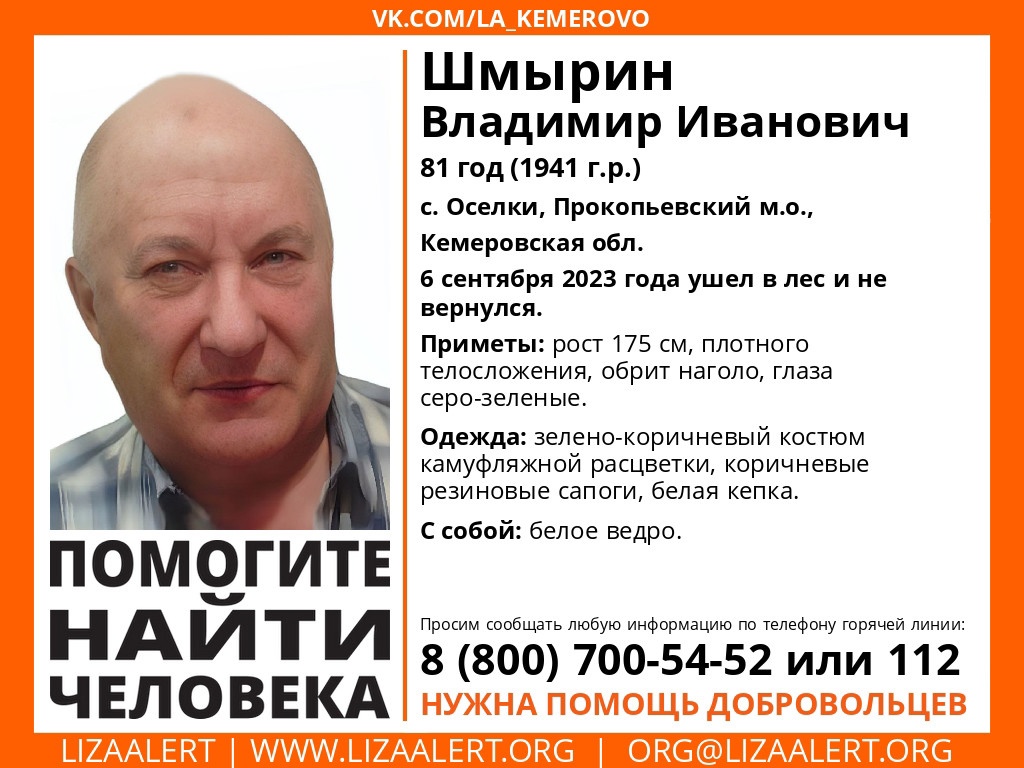 В Прокопьевском муниципальном округе бесследно исчез Владимир Иванович Шмырин. Об этом сообщили волонтёры поисково-спасательного отряда «Лиза Алерт» в Кузбассе.