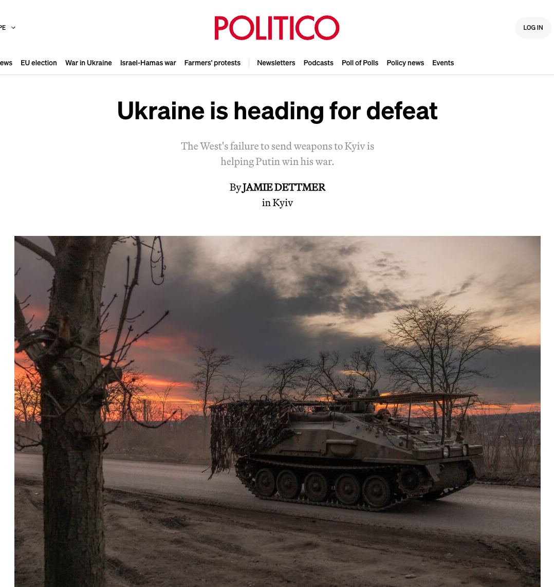 🇺🇦 Украина движется к поражению – Politico