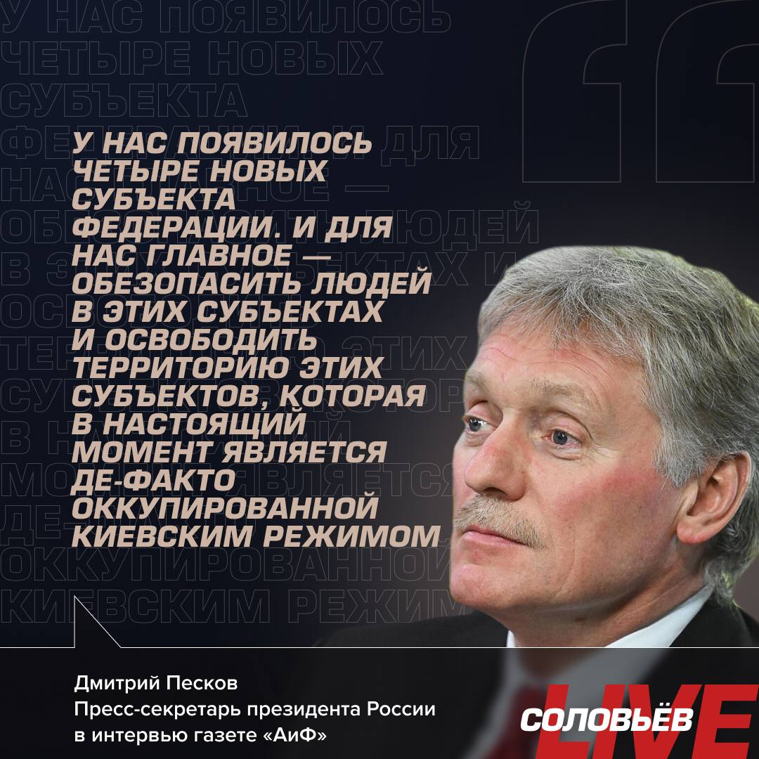 Пресс-секретарь президента России Дмитрий Песков о главных приоритетах страны в СВО.