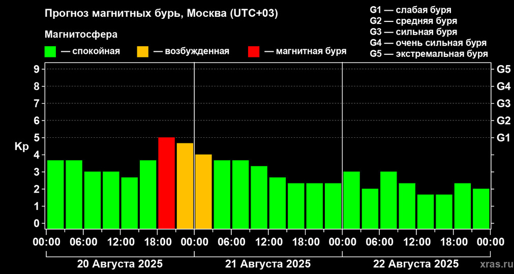 Вечером 20 августа на Землю обрушится очередная магнитная буря. Прогнозом космической погоды поделились на сайте Лаборатории солнечной астрономии ИКИ и ИСЗФ.