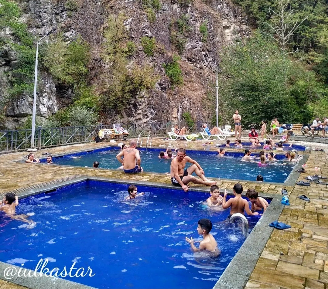 А водичка то не простая, а серная. Поэтому рекомендую сразу снять все свои серебряные украшения. Есть ещё один важный нюанс. Бассейны Боржоми позиционируются как горячие. Но на самом деле они еле тёплые. Поэтому зимой и холодной осенью есть хороший шанс хорошо подмерзнуть.