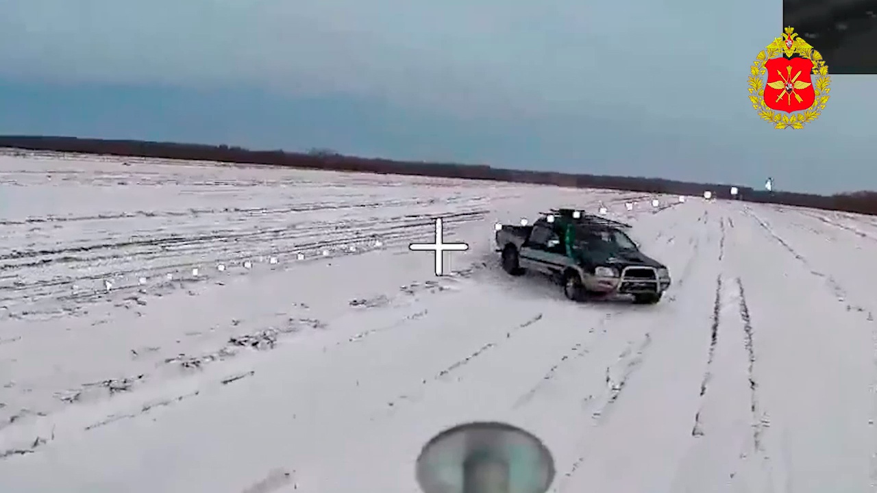 В объективе бортовых камер дронов зафиксировано поражение пикапа и квадроцикла ВСУ, которые использовались для ротации личного состава. Техника двигалась по заснеженной местности и дорогам, однако была своевременно выявлена операторами беспилотников и уничтожена прямыми попаданиями.