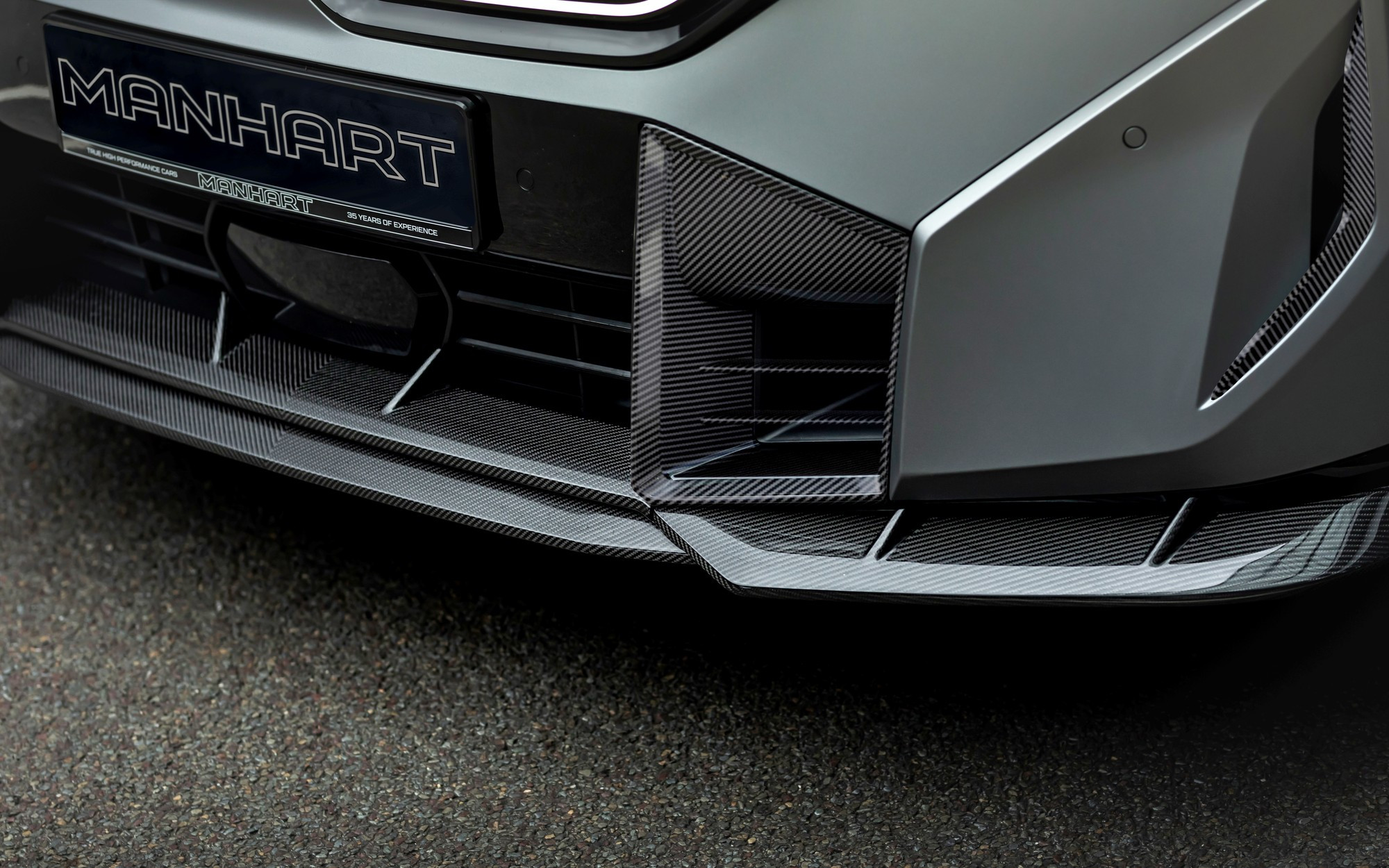 Новый обвес кузова у Manhart, как водится, сделан из углепластика, в комплект входят развитый передний спойлер, вставки в воздуховоды, новые рамки ноздрей, расширенные пороги, новый двойной спойлер на багажной двери, новый задний диффузор, накладки на задний бампер и фирменная виниловая оклейка Manhart. В салоне по сравнению со стоковой машиной существенно расширен карбоновый декор на передней панели, центральном тоннеле и рулевом колесе.