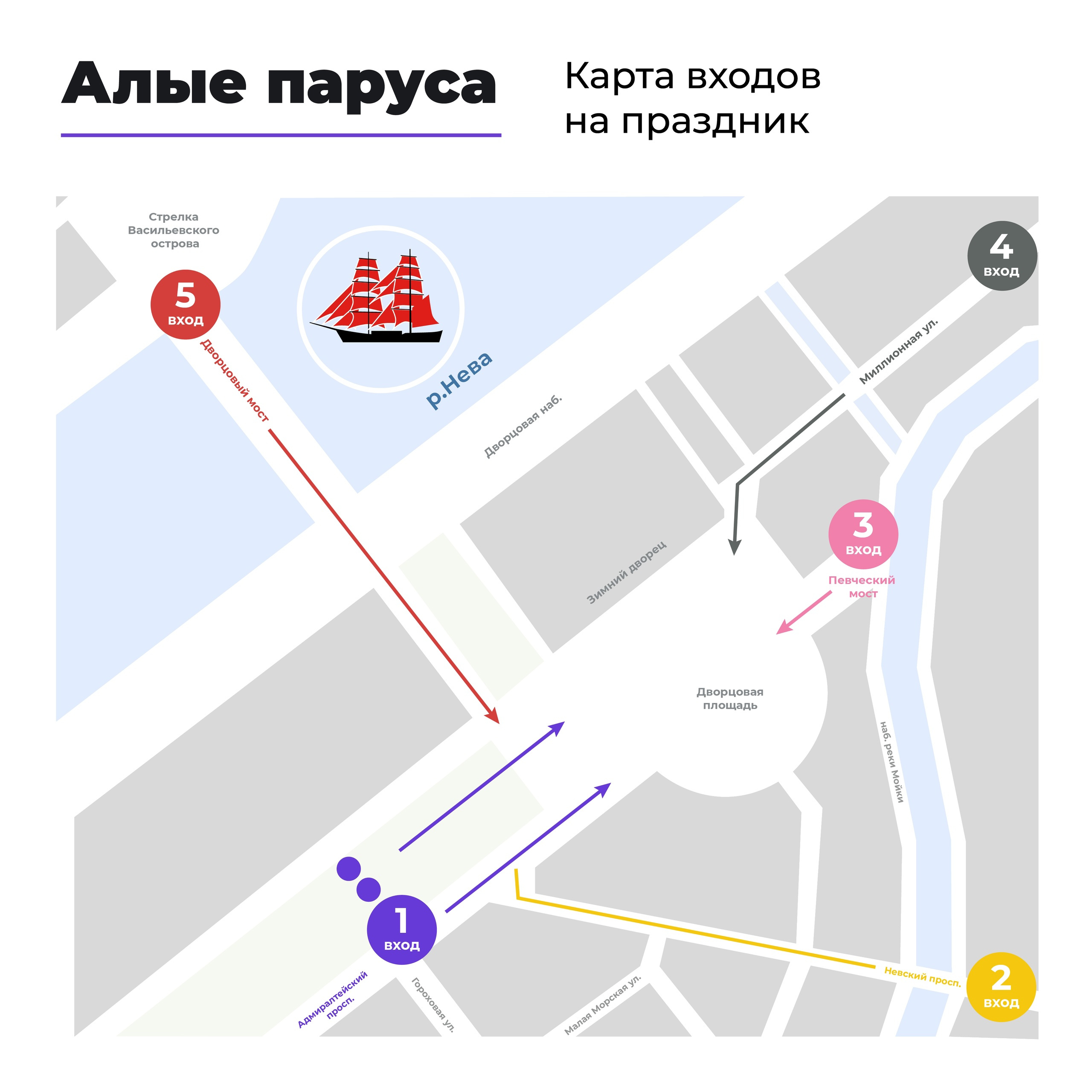 Уже традиционно во время проведения праздника Дворцовую площадь и Дворцовую набережную отдадут выпускникам. На территорию проведения будут пускать по билетам и пропускам. Запускать на площадь выпускников начнут в 19:30.