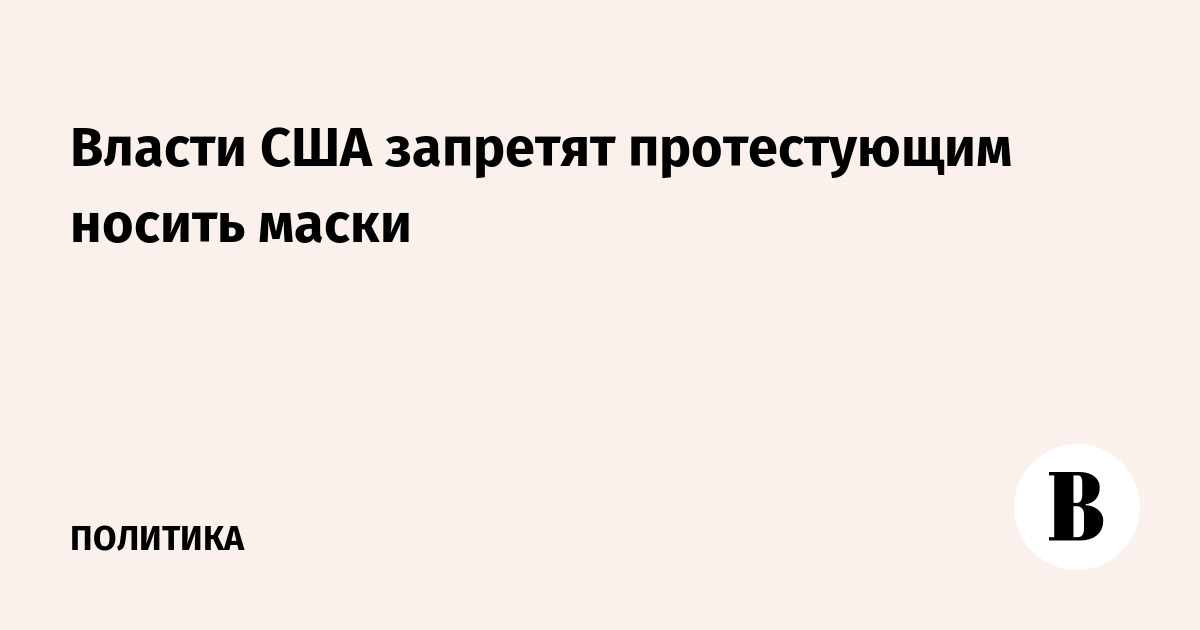 Президент США Дональд Трамп заявил, что участникам протестов запретят носить маски. Глава государства анонсировал запрет на фоне беспорядков в Лос-Анджелесе, которые вспыхнули после операции иммиграционных властей.