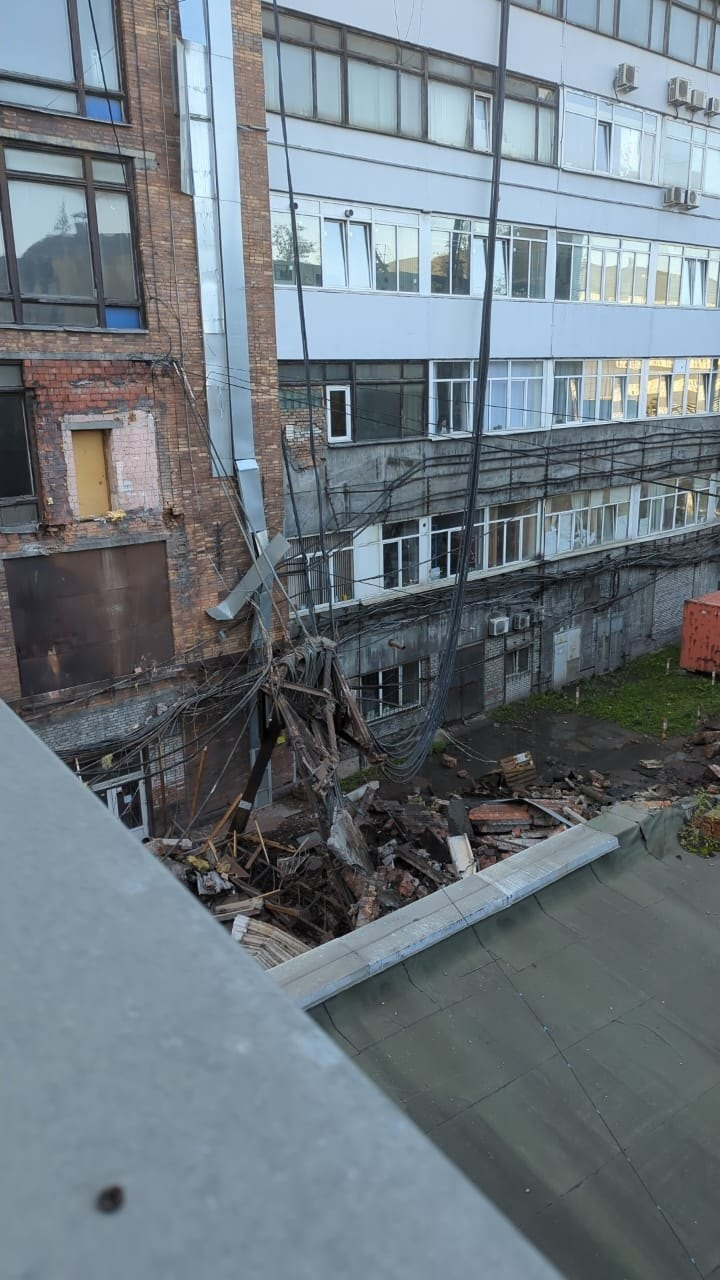 Очевидцы утром 8 августа рассказывают об обрушении конструкций на бывшей территории завода «Красный треугольник» на Обводном канале в Петербурге.